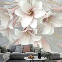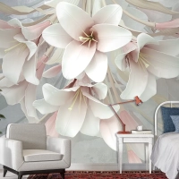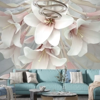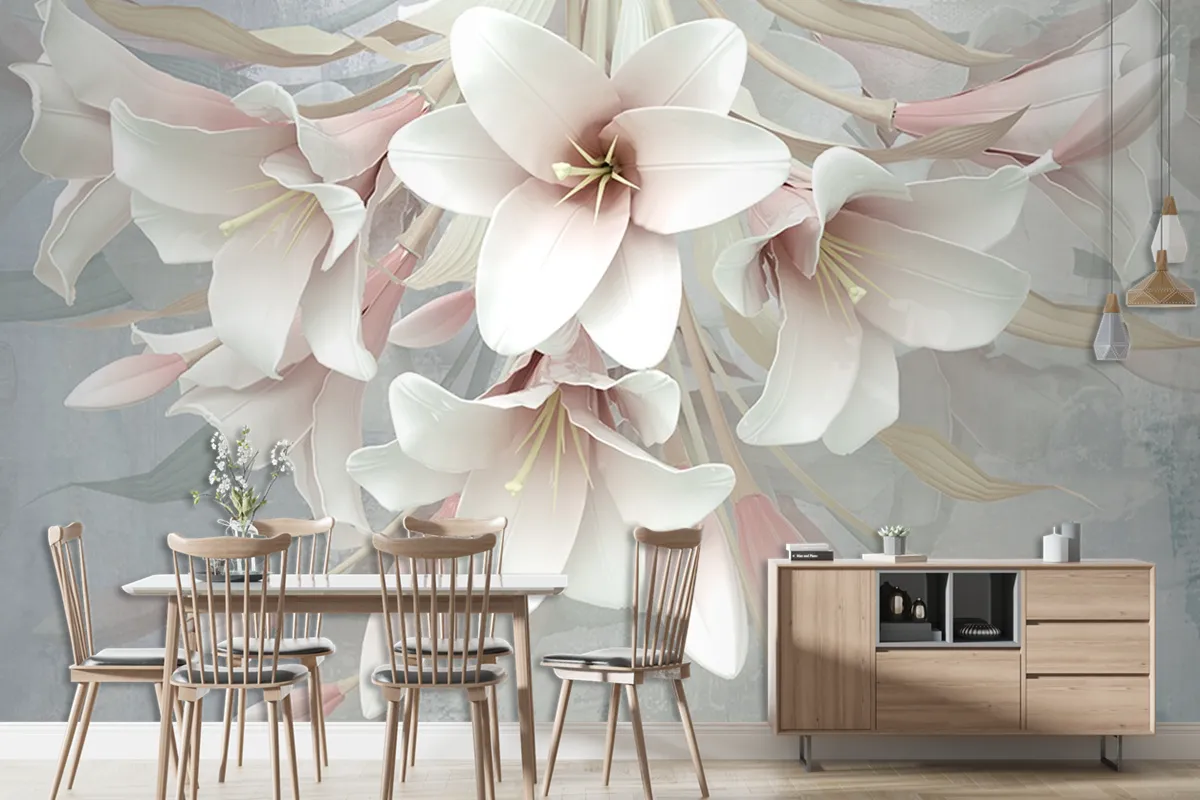 3 Boyutlu Büyük Romantik Çiçekler 3D Duvar Kağıdı