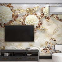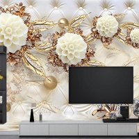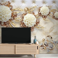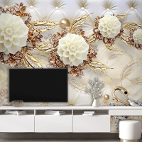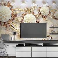 3 Boyutlu Tv Arkası Gold Çiçekler