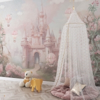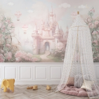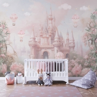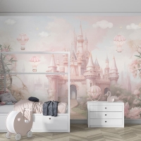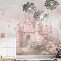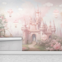 315 x 200 Tek Parça Premium Kumaş Tekstil - Pembe Düşler Masal Şatosu Prensesin Rüyası Kız Çocuk Odası Duvar Kağıdı