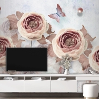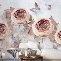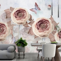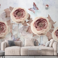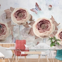 3D Çiçek Ve Kelebekler Vintage Duvar Kağıdı