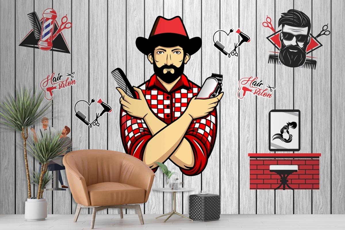 3D Duvar Berber Salonu Dükkanı Güzel Duvar Kağıdı