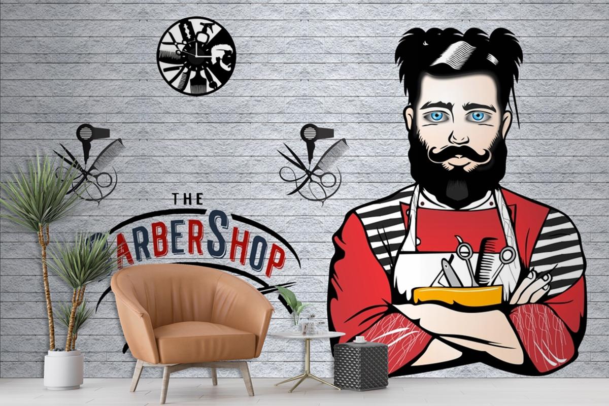 3D Duvar Kağıdı Berber Dükkanı Ve Salon Yüksek Kaliteli Duvar Kağıdı