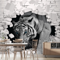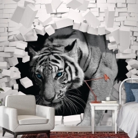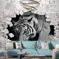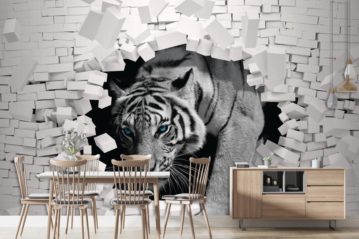 3D Duvar Kağıdı Çiçek Desenli Kaplan Arka Planı