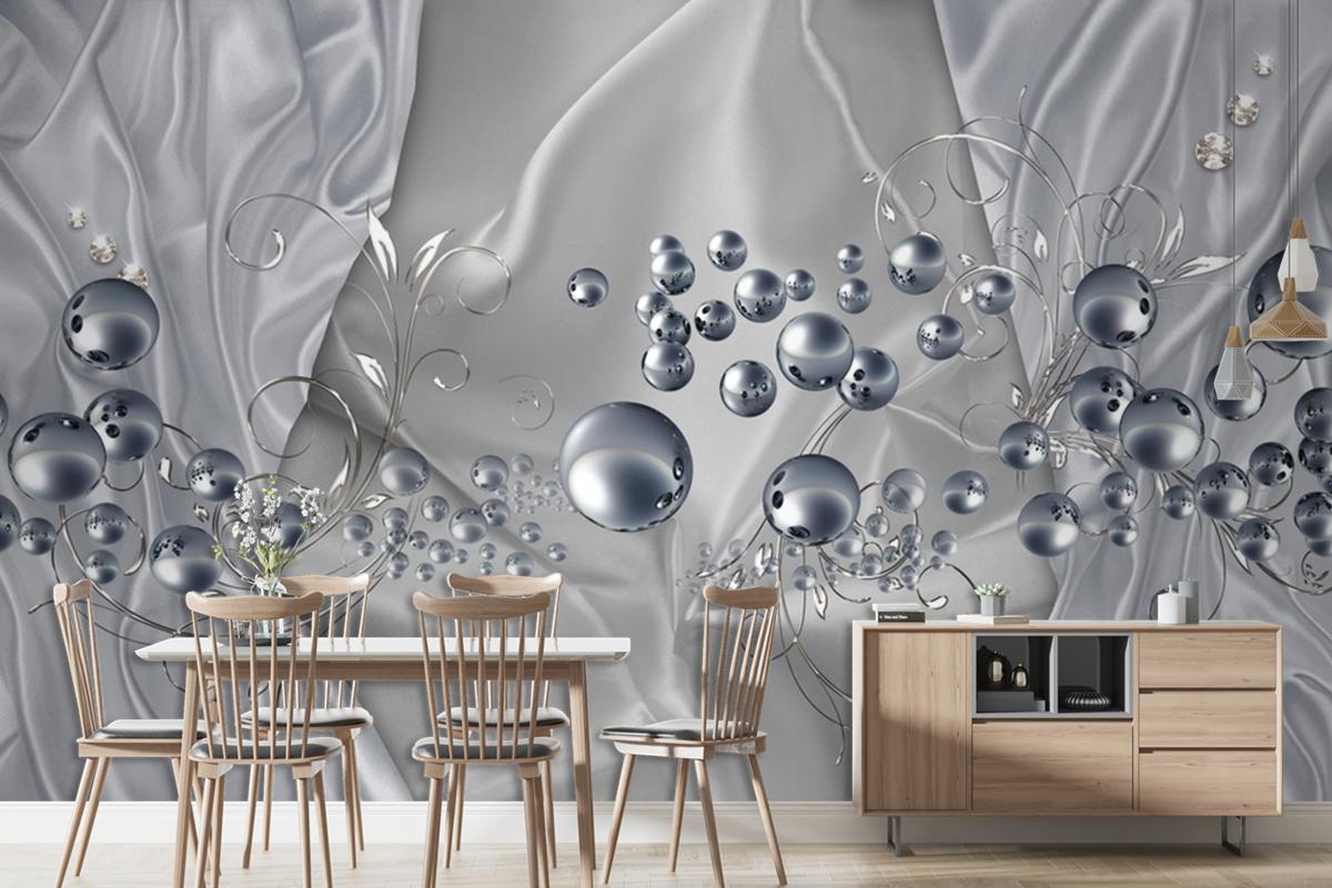 3D Duvar Kağıdı Gümüş Toplar Gri Arka Plan