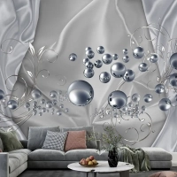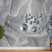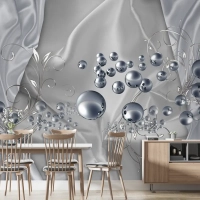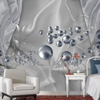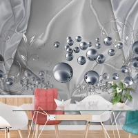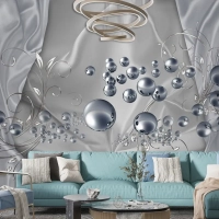 3D Duvar Kağıdı Gümüş Toplar Gri Arka Plan