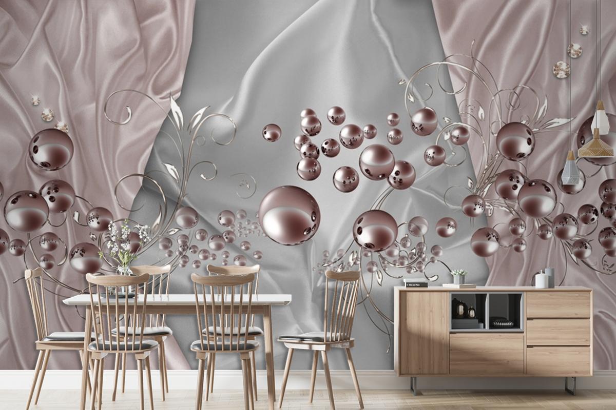 3D Duvar Kağıdı Gümüş Toplar Pembe Arka Plan