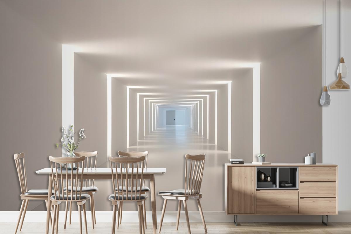 3D Görünümlü İllüstrasyon Soyut Beyaz Koridor Duvar Kağıdı