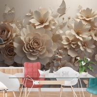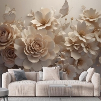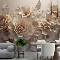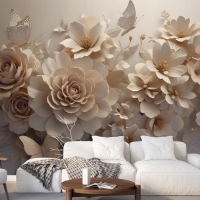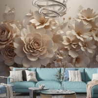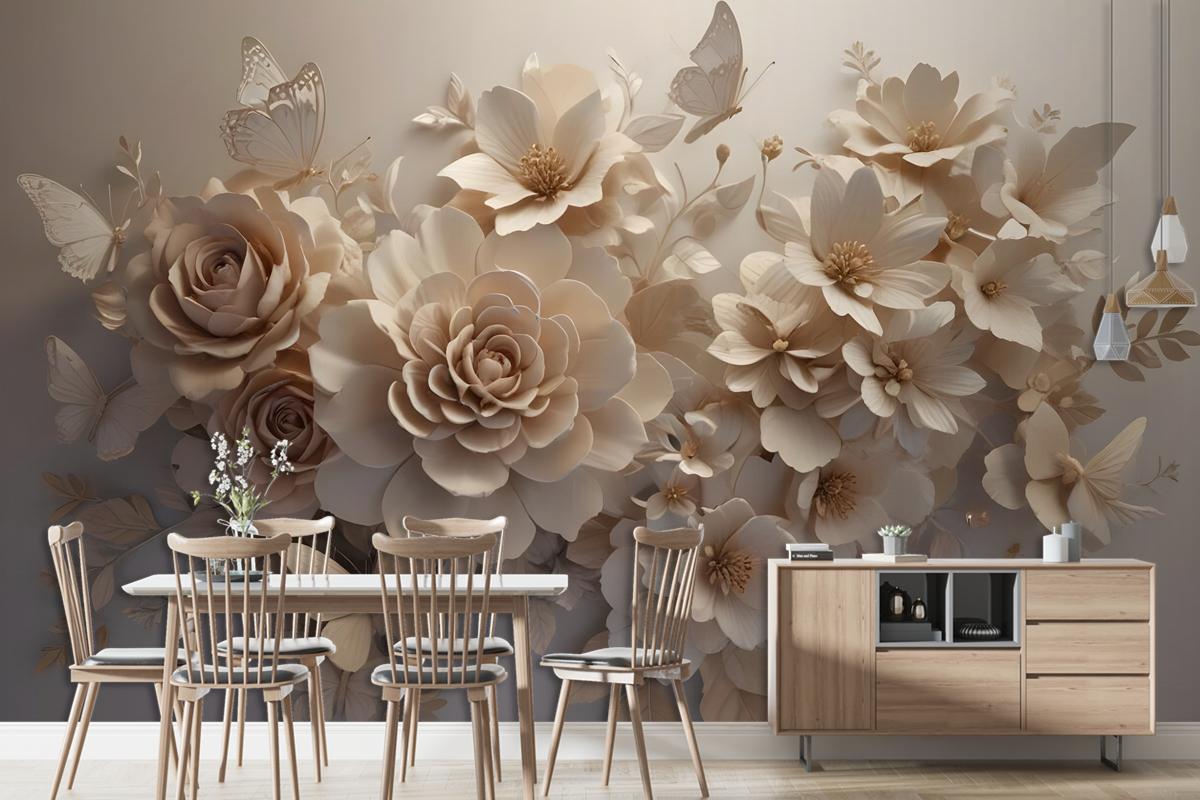 3D Görünümlü Kabartmalı Çiçek Duvar Kağıdı