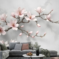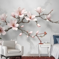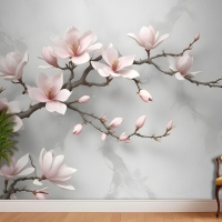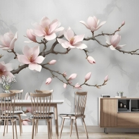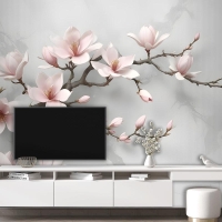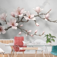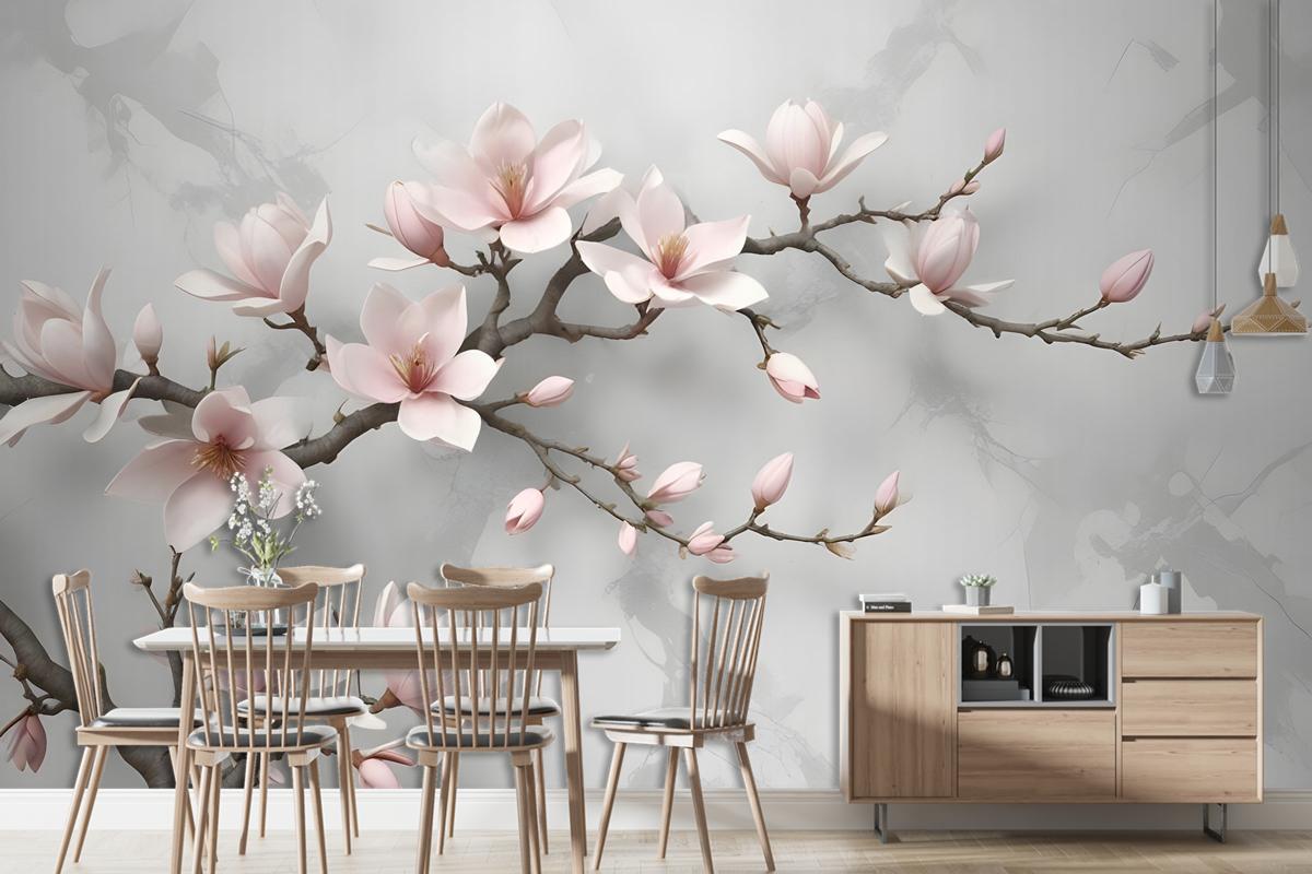 3D Görünümlü Pembe Manolya Çiçeği Duvar Kağıdı