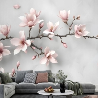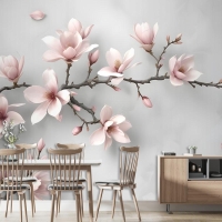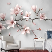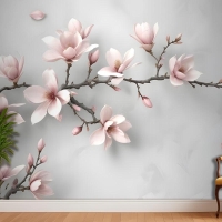 3D Görünümlü Pembe Manolya Çiçeği Duvar Kağıdı
