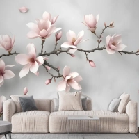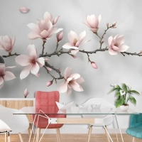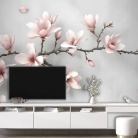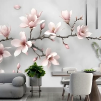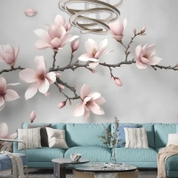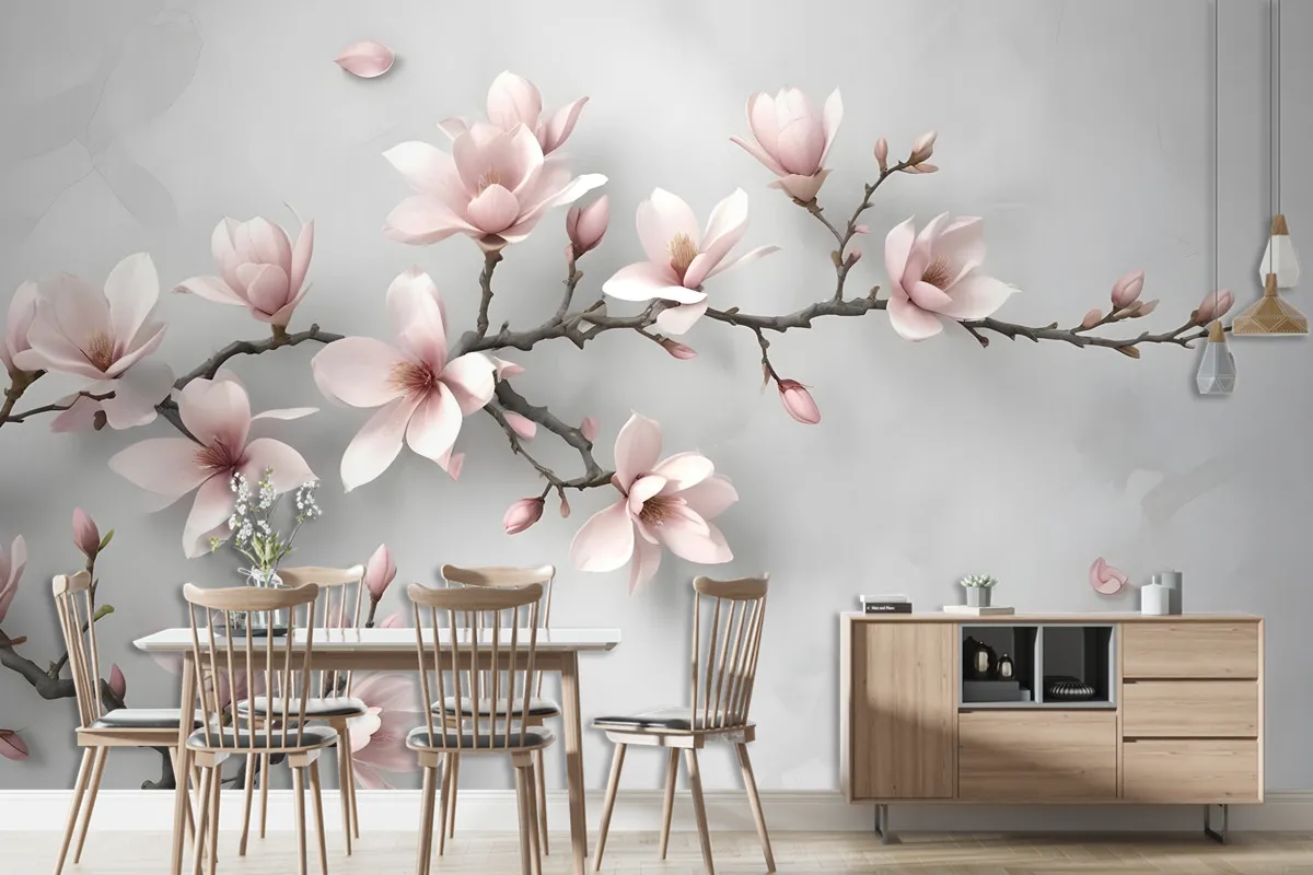 3D Görünümlü Pembe Manolya Çiçeği Duvar Kağıdı