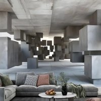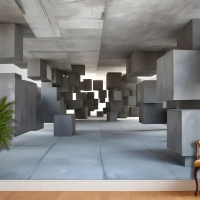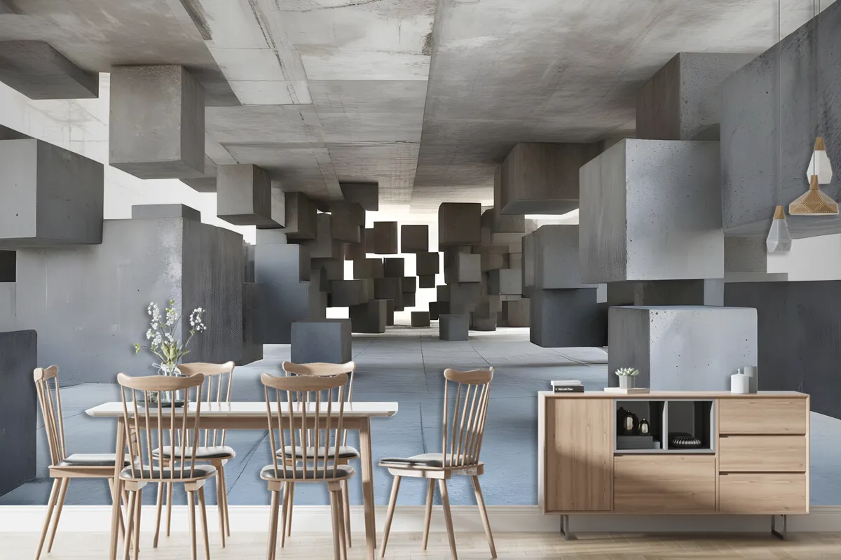 3D Görünümlü Soyut Geometrik Koridor Duvar Kağıdı