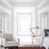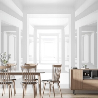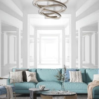 3D Görünümlü Soyut Mimari Beyaz Koridor Duvar Kağıdı