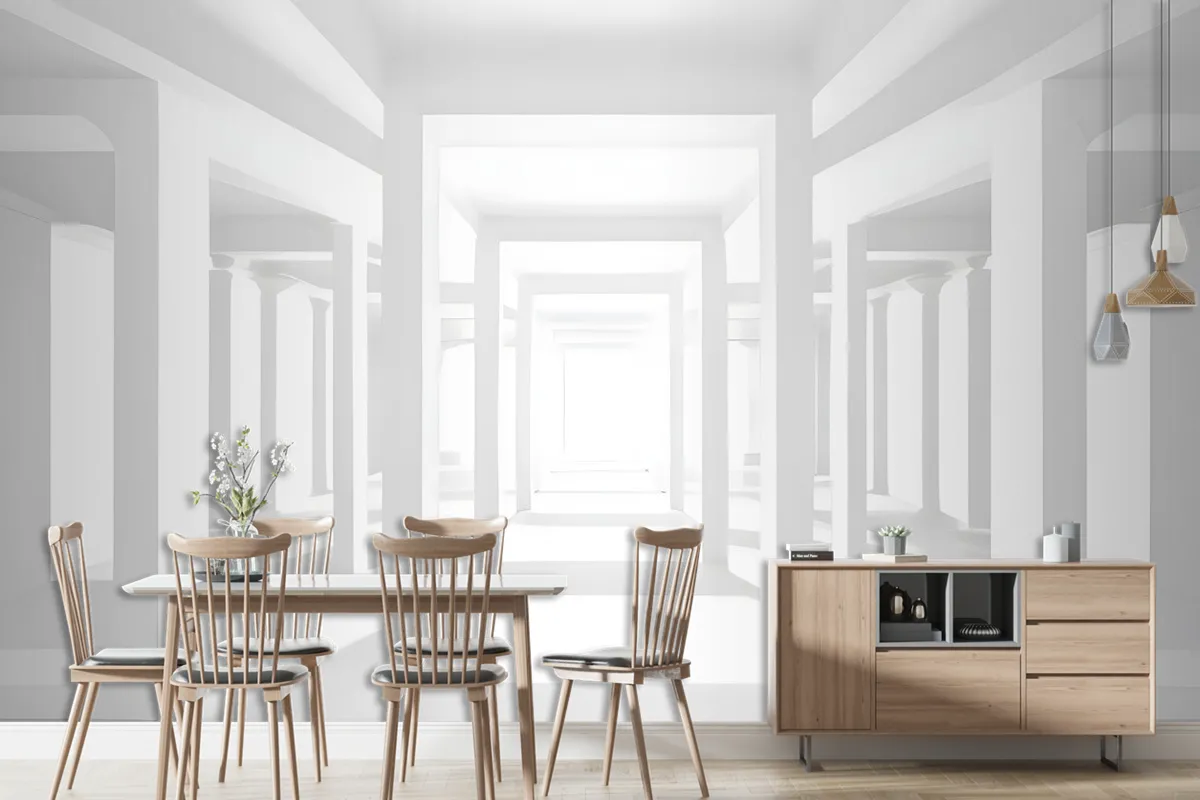 3D Görünümlü Soyut Mimari Beyaz Koridor Duvar Kağıdı
