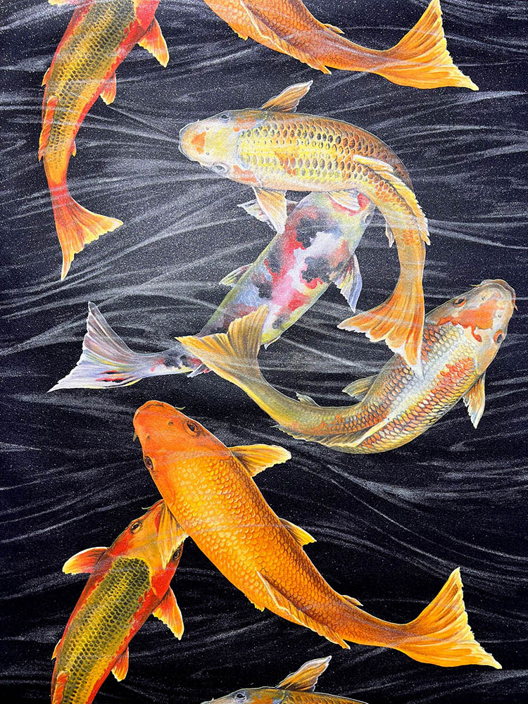 3D Japon Balıkları Simli Ucuz Duvar Kağıdı 53078