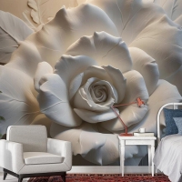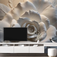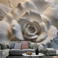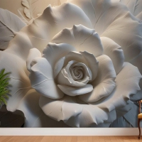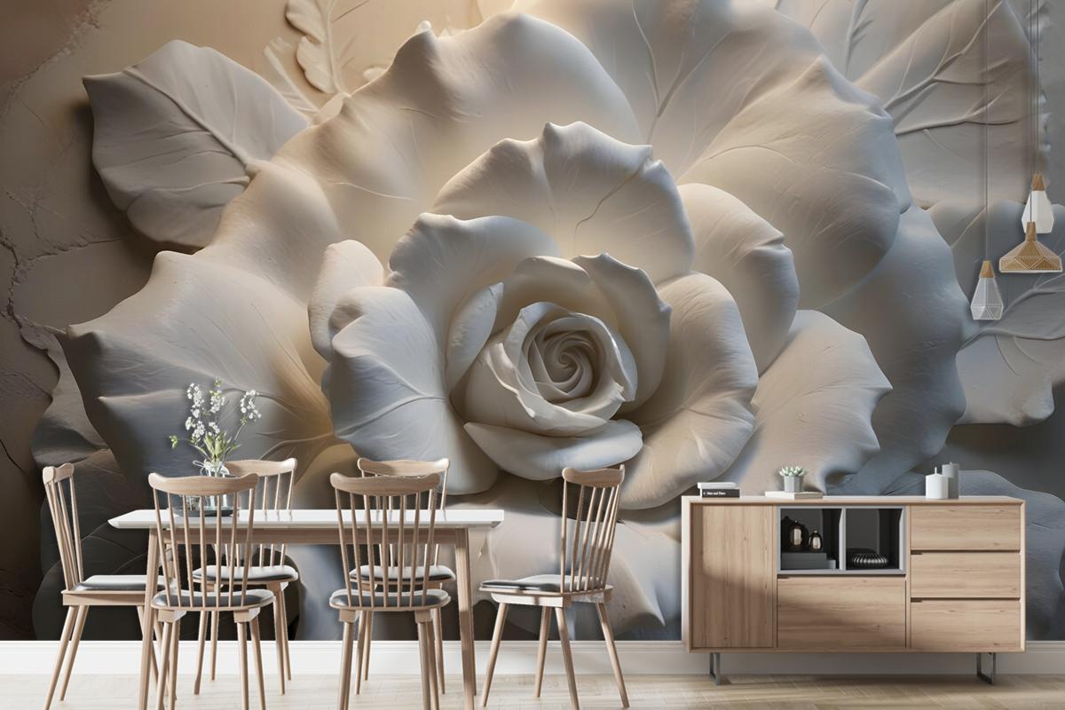 3D Kabartmalı Görünümlü Çimento Gülleri Duvar Kağıdı
