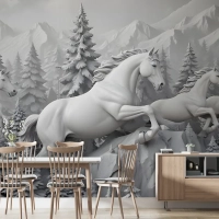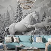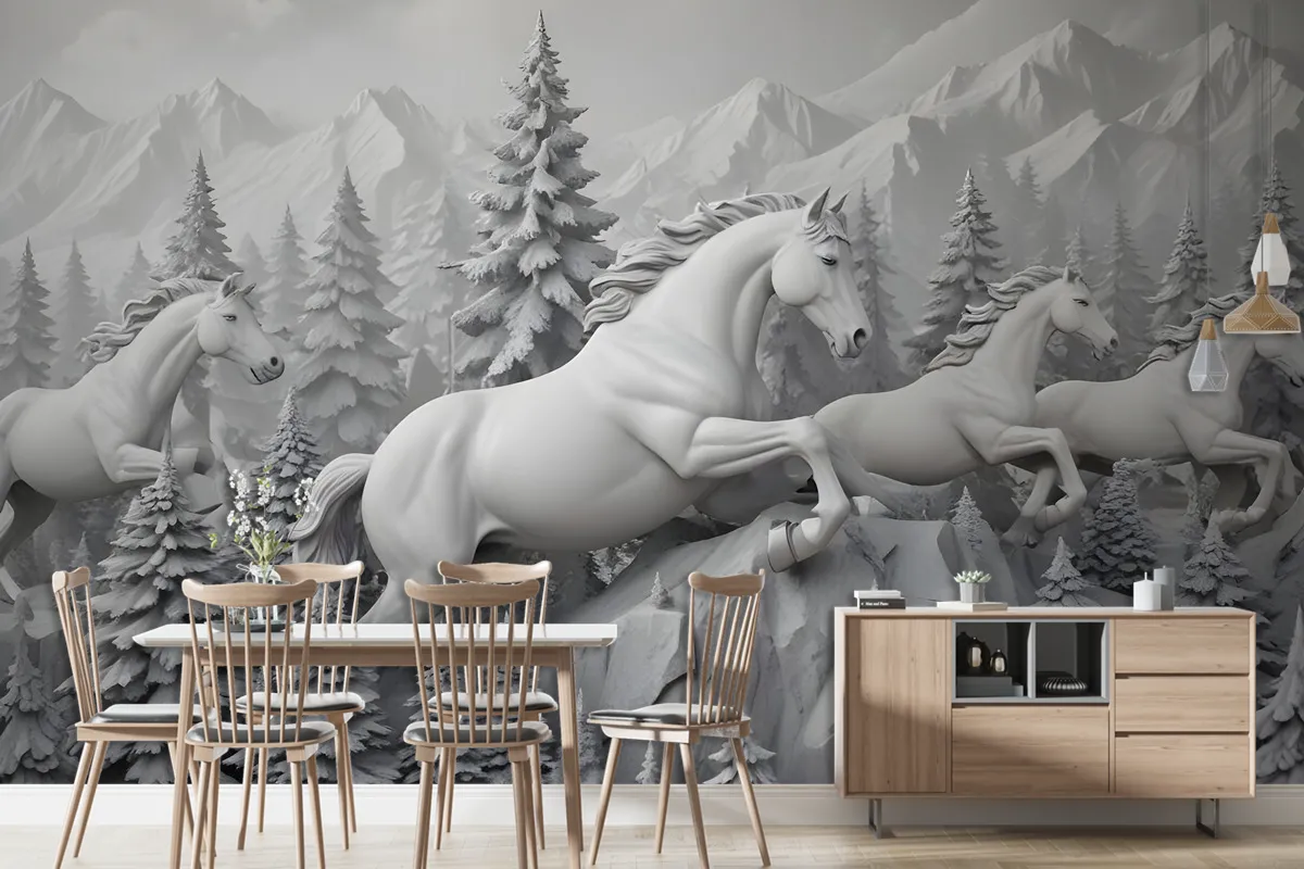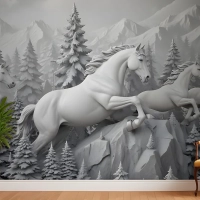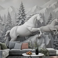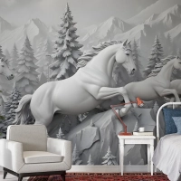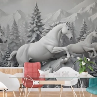 3D Kabartmalı Görünümlü Çimento Melek Atları Duvar Kağıdı