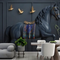 3D Kabartmalı Görünümlü Dark Horse Duvar Kağıdı