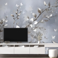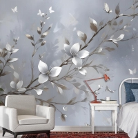 3D Kabartmalı Görünümlü Manolya Çiçeği Ve Kelebek Duvar Kağıdı