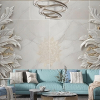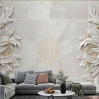 3D Kabartmalı Görünümlü Mermer Ayçiçeği Duvar Kağıdı