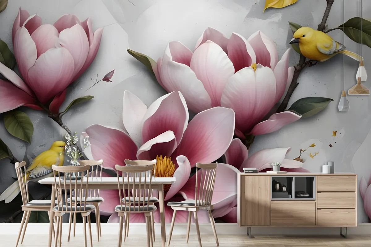 3D Kabartmalı Görünümlü Zambak Çiçeği Duvar Kağıdı