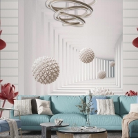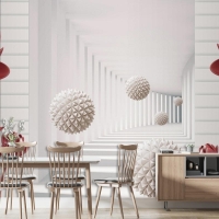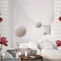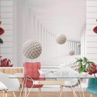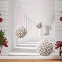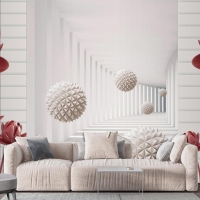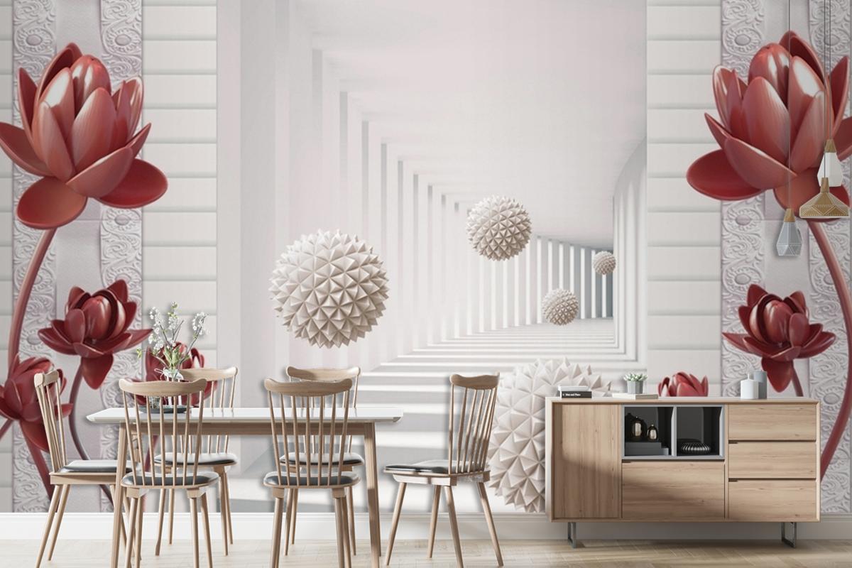 3D Kırmızı Çiçek Top Ve Tünel Duvar Kağıdı