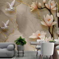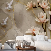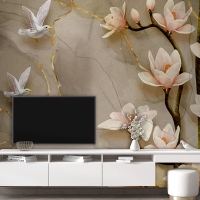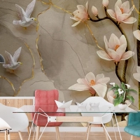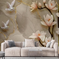 3D Kuş Çiçek Yaprak Arka Plan Duvar Kağıdı