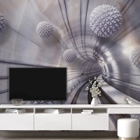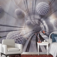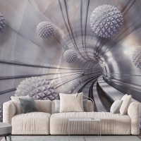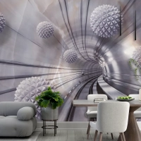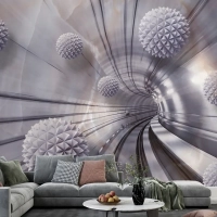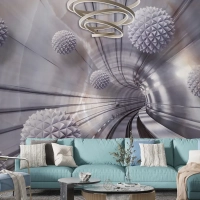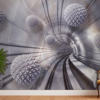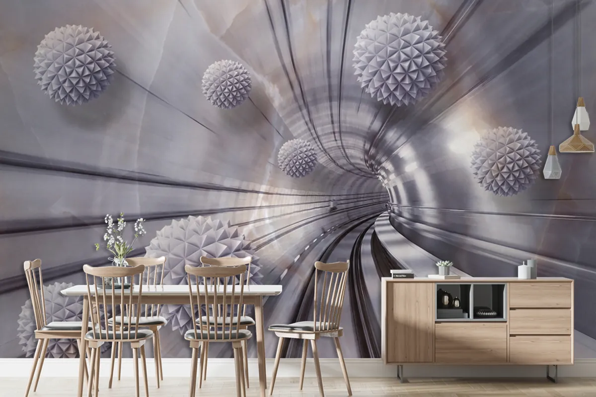 3D Toplar Ve Tren Rayı Tünel Duvar Kağıdı