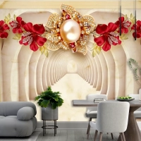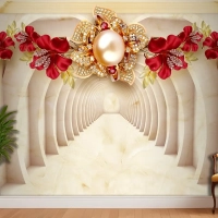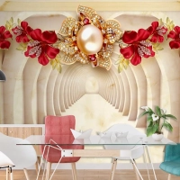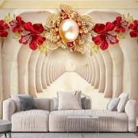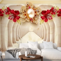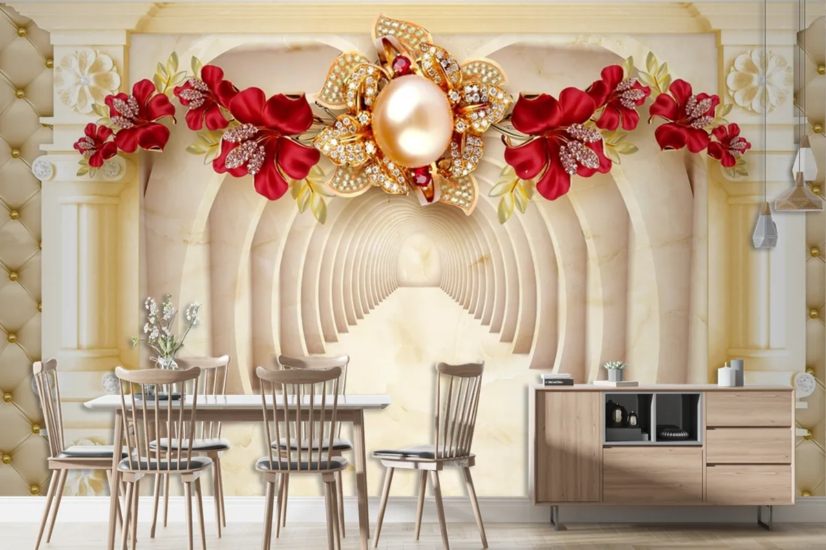 3D Tünel Duvar Kağıdı Gül Çiçek