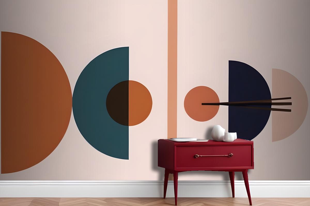 Açık Pembe Antre Hol Koridor Duvar Kağıdı Duvarına Karşı Mavi Turuncu Ve Kahverenginin Çeşitli Tonlarında Soyut Geometrik Şekiller
