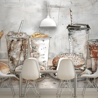 Açık Pembe Tarzında Fast Food Ürünleri Çizimi Cafe Duvar Kağıdı