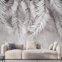 Açık Renk Tonlarında Tropikal Yapraklar Duvar Kağıdı