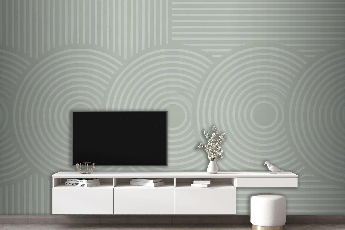 Açık Yeşil Renkli Eşmerkezli Daireler Dikey Çizgiler Oturma Odası Salon Duvar Kağıdı