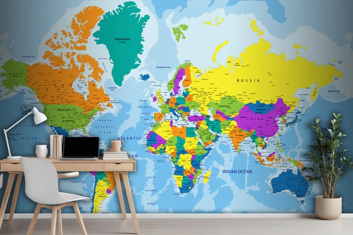 Açıkça Etiketlenmiş Duvar Kağıdı Ile Renkli Dünya Siyasi Haritası