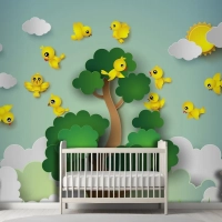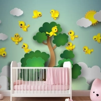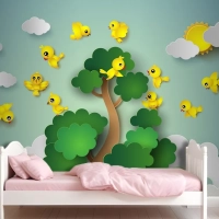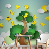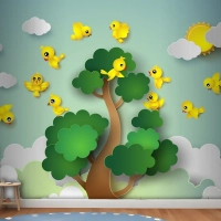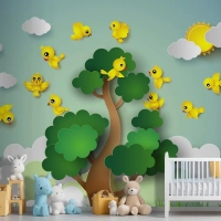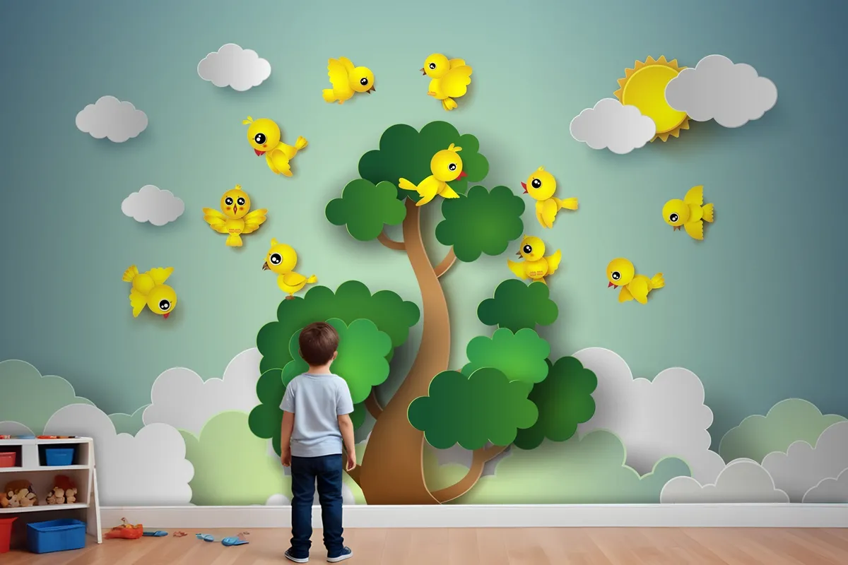 Ağacın Etrafında Uçan Kuş Çocuk Odası Duvar Kağıdı