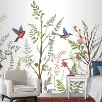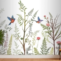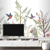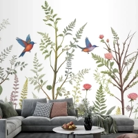 Ağaçlarda Kuşlarla Bahar Çiçeği Duvar Kağıdı
