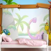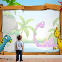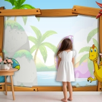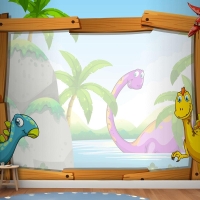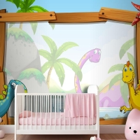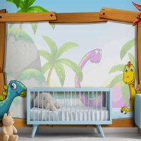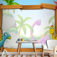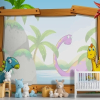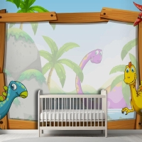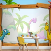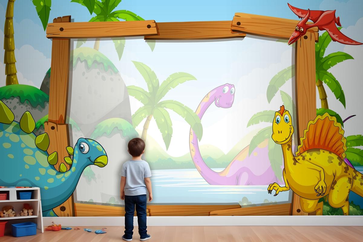 Ahşap Çerçeveli Dinozorlar Çocuk Odası Duvar Kağıdı