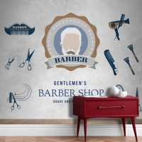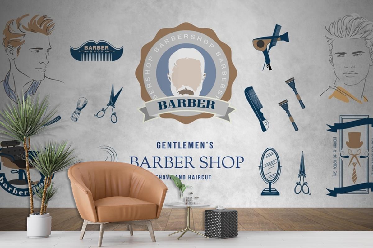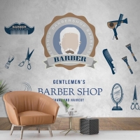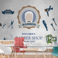 Ahşap Zemin Erkek Kuaför Berber Duvar Kağıdı