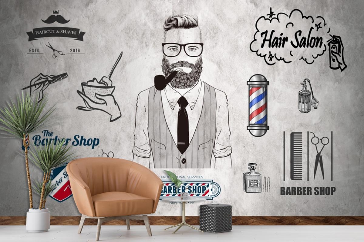 Ahşap Zemin Gri Arka Plan Berber Aletleri Duvar Kağıdı