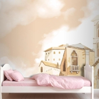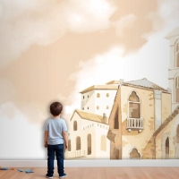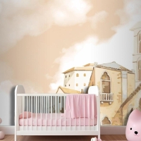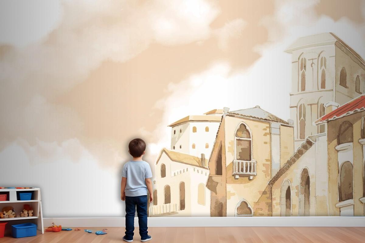 Akdeniz Şehir Binası Dış Su Renk Stili Çocuk Odası Duvar Kağıdı