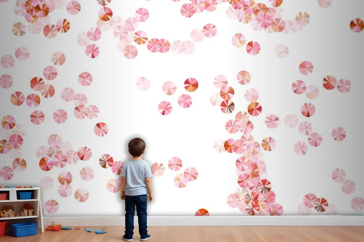 Allık Pembe Boncuk Konfeti Dağılım Vektör Kompozisyonu Ritmik Çocuk Odası Duvar Kağıdı
