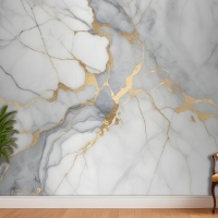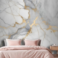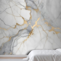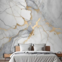 Altın Damarlı Beyaz Ve Gri Mermer Dokusu Yatak Odası Duvar Kağıdı