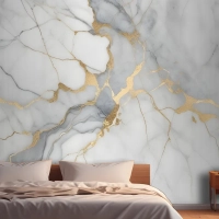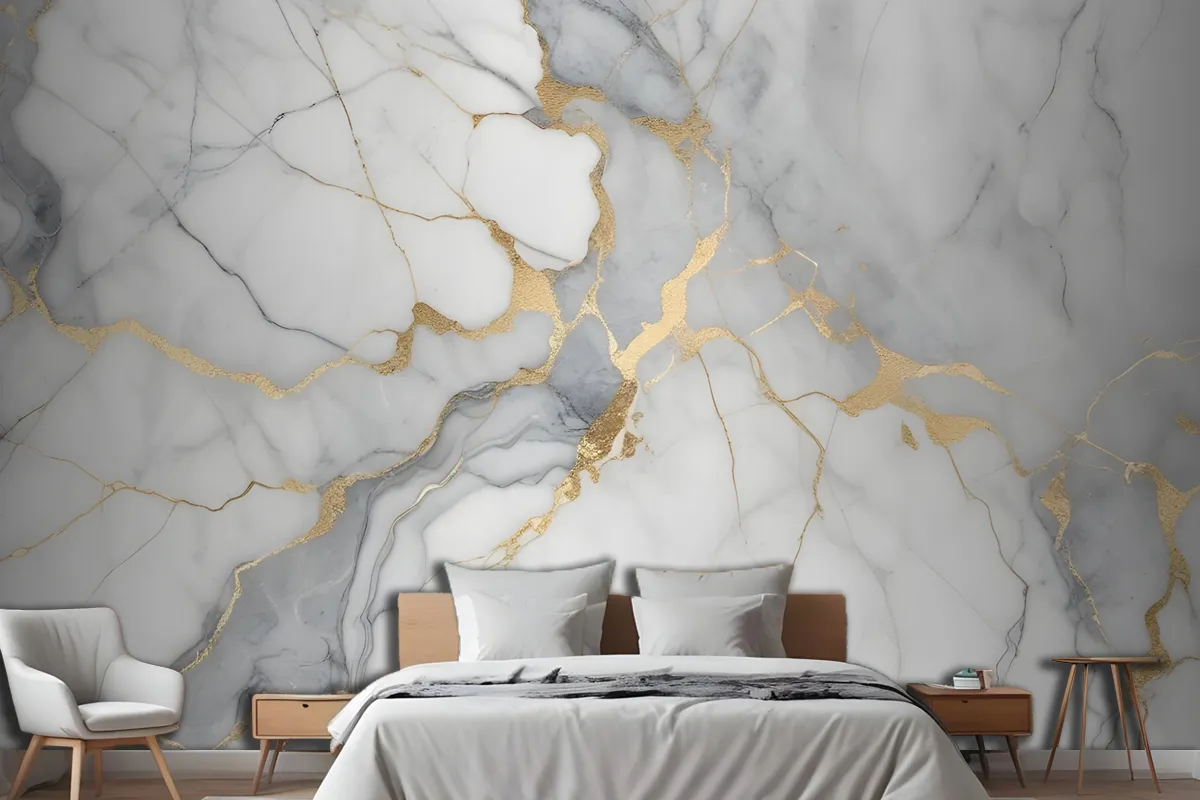 Altın Damarlı Beyaz Ve Gri Mermer Dokusu Yatak Odası Duvar Kağıdı