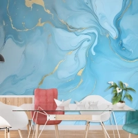 Altın Görünümlü Açık Mavi Mermer Splash Duvar Kağıdı