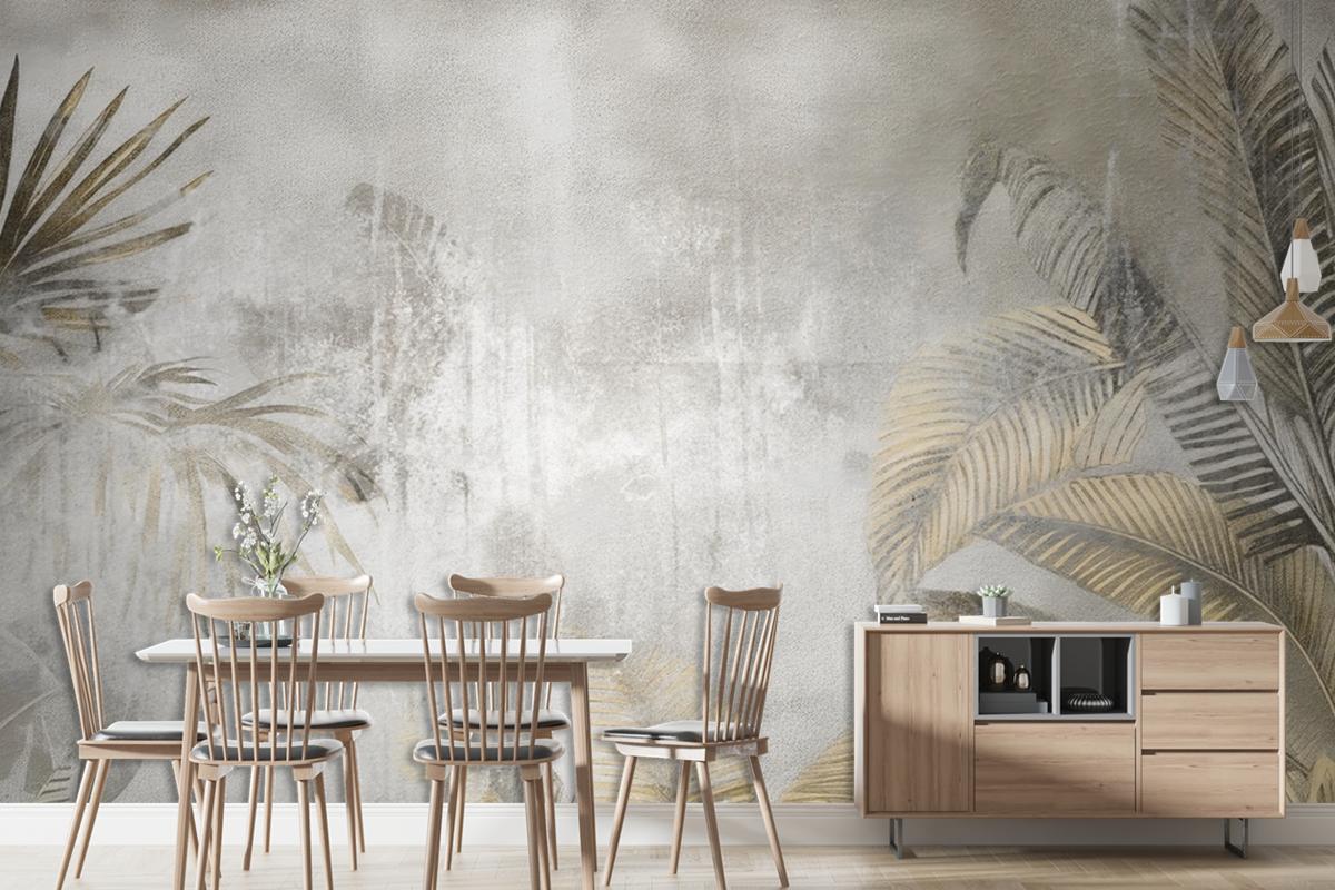 Altın Palmiye Yaprakları Vintage Duvar Kağıdı