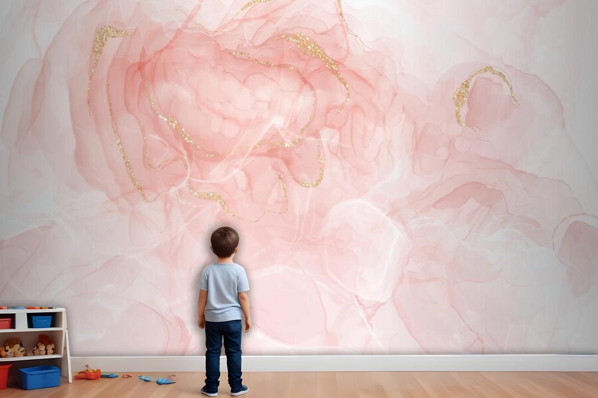 Altın Parıltılı Çocuk Odası Duvar Kağıdı Ile Zarif El Boyalı Alkol Mürekkep Arka Planı