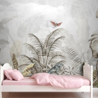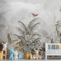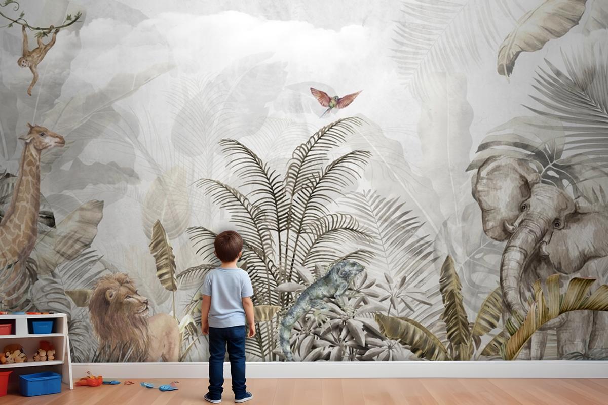 Altın Tropikal Safari Hayvanları Çocuk Odası Duvar Kağıdı