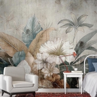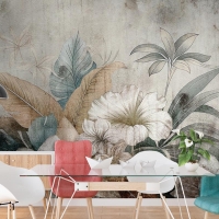 Antika Dokulu Bitkisel Desen Vintage Duvar Kağıdı