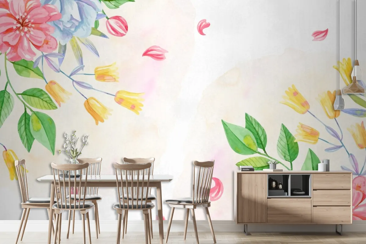 Arka Plan Pastel Renkler Suluboya Çiçekler Duvar Kağıdı