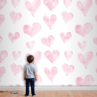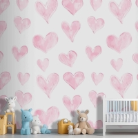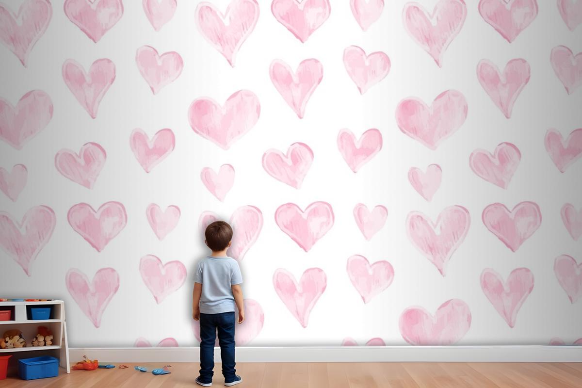 Aşk Kalp Deseni Elle Çizilmiş Sevgililer Günü Çocuk Odası Duvar Kağıdı